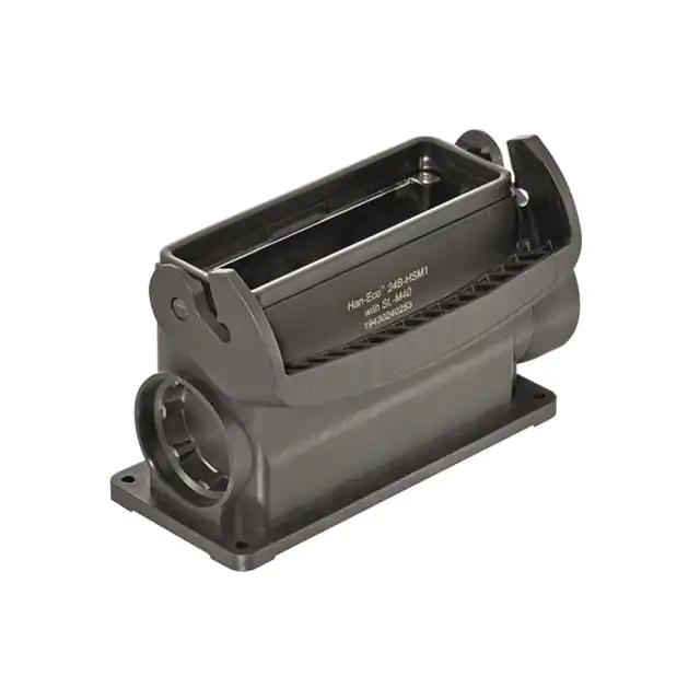 This is manufactured by HARTING. The manufacturer part number is 19430240252. Additionally, the product is designed with side entry Style. It is assigned with possible HTSUS value of 8538.90.8180. The product is rohs3 compliant. It has a typical thread size of m32. The product has -40°c ~ 125°c operating temperature range. Its typical moisture sensitivity level is not applicable. In addition, it is reach unaffected. It has an integral black housing colour. It is shipped in bulk. base - box mount Connector type offer robust functionality. The product's diameters include 5.669" l x 2.559" w x 3.465" h (144.00mm x 65.00mm x 88.00mm). It has a long 8 weeks standard lead time. The product also features robust polyamide (pa), nylon, glass filled housing material. It is IP rated with ip66 - dust tight, water resistant. The product han-eco® b, is a highly preferred choice for users. Lock Type & Location Information: locking clip (1) on base bottom. The product is available in 24b size. Moreover, it corresponds to 19430240, a base product number of the product. The product is designated with the ear99 code number