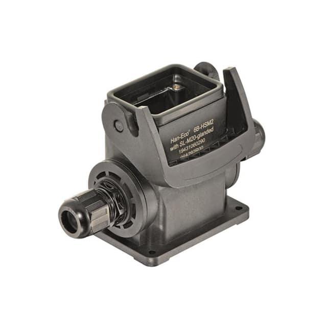 This is manufactured by HARTING. The manufacturer part number is 19431060290. Additionally, the product is designed with side entry Style. It is assigned with possible HTSUS value of 8538.90.8180. The product is rohs3 compliant. It has a typical thread size of m20. The product has -40°c ~ 125°c operating temperature range. Its typical moisture sensitivity level is not applicable. In addition, it is reach unaffected. It has an integral black housing colour. It is shipped in bulk. base - box mount Connector type offer robust functionality. The product's diameters include 3.307" l x 2.559" w x 3.465" h (84.00mm x 65.00mm x 88.00mm). It has a long 8 weeks standard lead time. The product also features robust polyamide (pa), nylon, glass filled housing material. It is IP rated with ip66 - dust tight, water resistant. The splendid features of the product include feed through. The product han-eco® b, is a highly preferred choice for users. Lock Type & Location Information: locking clip (1) on base bottom. The product is available in 6b size. Moreover, it corresponds to 19431060, a base product number of the product. The product is designated with the ear99 code number