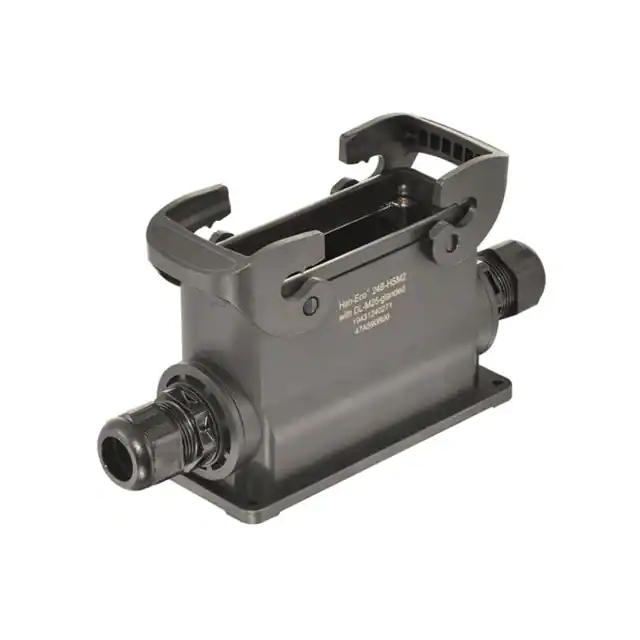 This is manufactured by HARTING. The manufacturer part number is 19431240271. Additionally, the product is designed with side entry Style. It is assigned with possible HTSUS value of 8538.90.8180. The product is rohs3 compliant. It has a typical thread size of m25. The product has -40°c ~ 125°c operating temperature range. Its typical moisture sensitivity level is not applicable. In addition, it is reach unaffected. It has an integral black housing colour. It is shipped in bulk. base - box mount Connector type offer robust functionality. The product's diameters include 5.669" l x 2.559" w x 3.465" h (144.00mm x 65.00mm x 88.00mm). It has a long 8 weeks standard lead time. The product also features robust polyamide (pa), nylon, glass filled housing material. It is IP rated with ip66 - dust tight, water resistant. The splendid features of the product include feed through. The product han-eco® b, is a highly preferred choice for users. Lock Type & Location Information: locking clip (2) on base bottom. The product is available in 24b size. Moreover, it corresponds to 19431240, a base product number of the product. The product is designated with the ear99 code number