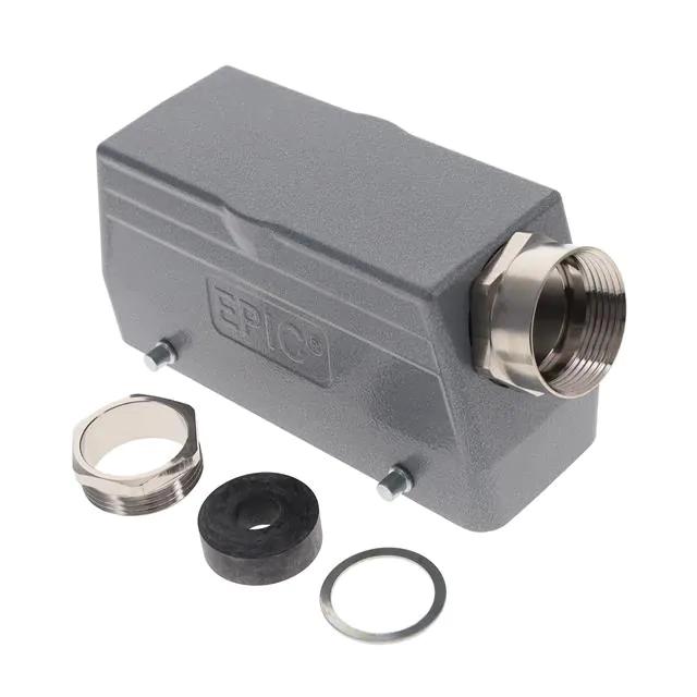 This is manufactured by LAPP. The manufacturer part number is 101130. Additionally, the product is designed with side entry Style. It is assigned with possible HTSUS value of 8538.90.8180. The product is rohs compliant. It has a typical thread size of pg21. The product has -40°c ~ 125°c operating temperature range. Its typical moisture sensitivity level is 1 (unlimited). The product's housing has finished with a rugged powder coated. In addition, it is reach unaffected. It has an integral gray housing colour. It is shipped in bulk. hood Connector type offer robust functionality. The product's diameters include 4.724" l x 1.693" w x 2.402" h (120.00mm x 43.00mm x 61.00mm). It has a long 5 weeks standard lead time. The product also features robust aluminum alloy housing material. It is IP rated with ip65 - dust tight, water resistant. The product epic® hb, is a highly preferred choice for users. Lock Type & Location Information: locking clip (2) on base bottom. The product is available in hb24 size. The product is designated with the ear99 code number