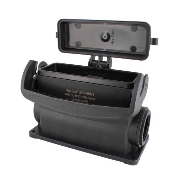 This is manufactured by HARTING. The manufacturer part number is 19430240257. Additionally, the product is designed with side entry Style. It is assigned with possible HTSUS value of 8538.90.8180. The product is rohs3 compliant. It has a typical thread size of m32. The product has -40°c ~ 125°c operating temperature range. Its typical moisture sensitivity level is 1 (unlimited). In addition, it is reach unaffected. It has an integral black housing colour. It is shipped in bulk. base - box mount Connector type offer robust functionality. The product's diameters include 5.669" l x 2.559" w x 3.465" h (144.00mm x 65.00mm x 88.00mm). It has a long 14 weeks standard lead time. The product also features robust polyamide (pa), nylon, glass filled housing material. It is IP rated with ip66 - dust tight, water resistant. The splendid features of the product include cover. The product han-eco® b, is a highly preferred choice for users. Lock Type & Location Information: locking clip (1) on base bottom. The product is available in 24b size. Moreover, it corresponds to 19430240, a base product number of the product. The product is designated with the ear99 code number