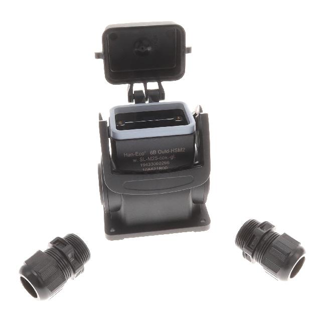 This is manufactured by HARTING. The manufacturer part number is 19433060296. Additionally, the product is designed with side entry, dual Style. It is assigned with possible HTSUS value of 8538.90.8180. The product is rohs3 compliant. It has a typical thread size of m25. The product has -40°c ~ 125°c operating temperature range. Its typical moisture sensitivity level is 1 (unlimited). In addition, it is reach unaffected. It has an integral black housing colour. It is shipped in bulk. base - box mount Connector type offer robust functionality. The product's diameters include 3.307" l x 2.559" w x 3.465" h (84.00mm x 65.00mm x 88.00mm). It has a long 15 weeks standard lead time. The product also features robust polyamide (pa), nylon, glass filled housing material. It is IP rated with ip66 - dust tight, water resistant. The splendid features of the product include cover, feed through. The product han-eco® b, is a highly preferred choice for users. Lock Type & Location Information: locking clip (1) on base bottom. The product is available in 6b size. Moreover, it corresponds to 19433060, a base product number of the product. The product is designated with the ear99 code number