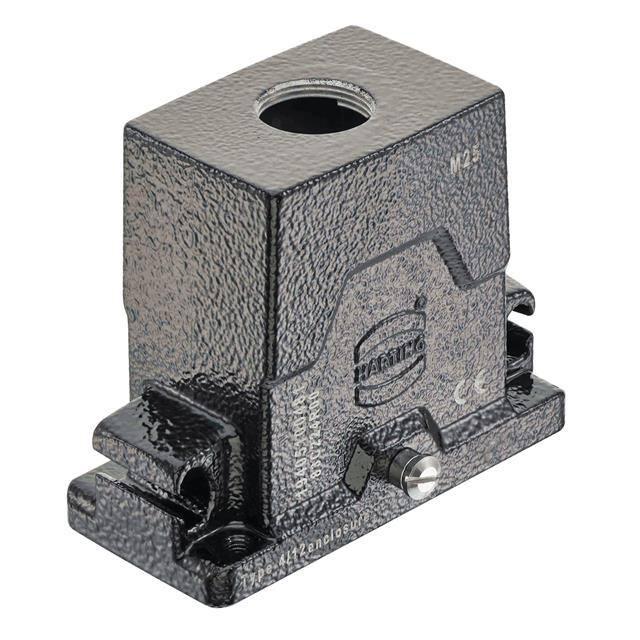 This is manufactured by HARTING. The manufacturer part number is 19405100481. Additionally, the product is designed with top entry Style. It is assigned with possible HTSUS value of 8538.90.8180. The product is rohs3 compliant. It has a typical thread size of m25. The product has -40°c ~ 125°c operating temperature range. Its typical moisture sensitivity level is 1 (unlimited). The product's housing has finished with a rugged powder coated. It has an integral black housing colour. It is shipped in bulk. hood Connector type offer robust functionality. It has a long 11 weeks standard lead time. The product also features robust aluminum, die cast housing material. It is IP rated with ip65/ip68/ip6k9k - dust tight, water resistant, waterproof. The product han® hpr, is a highly preferred choice for users. Lock Type & Location Information: locking clip (1) on base bottom. The product is available in 10hpr size. The product is designated with the ear99 code number