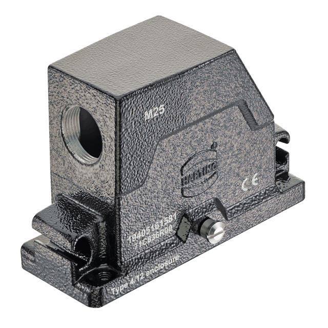 This is manufactured by HARTING. The manufacturer part number is 19405161581. Additionally, the product is designed with side entry Style. It is assigned with possible HTSUS value of 8538.90.8180. The product is rohs3 compliant. It has a typical thread size of m25. The product has -40°c ~ 125°c operating temperature range. Its typical moisture sensitivity level is 1 (unlimited). The product's housing has finished with a rugged powder coated. It has an integral black housing colour. It is shipped in bulk. hood Connector type offer robust functionality. It has a long 11 weeks standard lead time. The product also features robust aluminum, die cast housing material. It is IP rated with ip65/ip68/ip6k9k - dust tight, water resistant, waterproof. The product han® hpr, is a highly preferred choice for users. Lock Type & Location Information: screw locks on hood. The product is available in 16hpr size. The product is designated with the ear99 code number