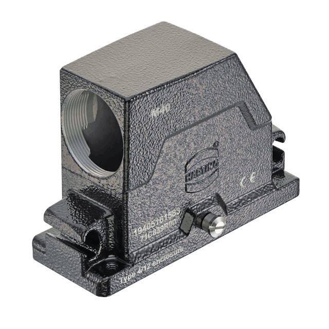 This is manufactured by HARTING. The manufacturer part number is 19405161583. Additionally, the product is designed with side entry Style. It is assigned with possible HTSUS value of 8538.90.8180. The product is rohs3 compliant. It has a typical thread size of m40. The product has -40°c ~ 125°c operating temperature range. Its typical moisture sensitivity level is 1 (unlimited). The product's housing has finished with a rugged powder coated. It has an integral black housing colour. It is shipped in bulk. hood Connector type offer robust functionality. It has a long 11 weeks standard lead time. The product also features robust aluminum, die cast housing material. It is IP rated with ip65/ip68/ip6k9k - dust tight, water resistant, waterproof. The product han® hpr, is a highly preferred choice for users. Lock Type & Location Information: locking clip (1) on base bottom. The product is available in 16hpr size. The product is designated with the ear99 code number