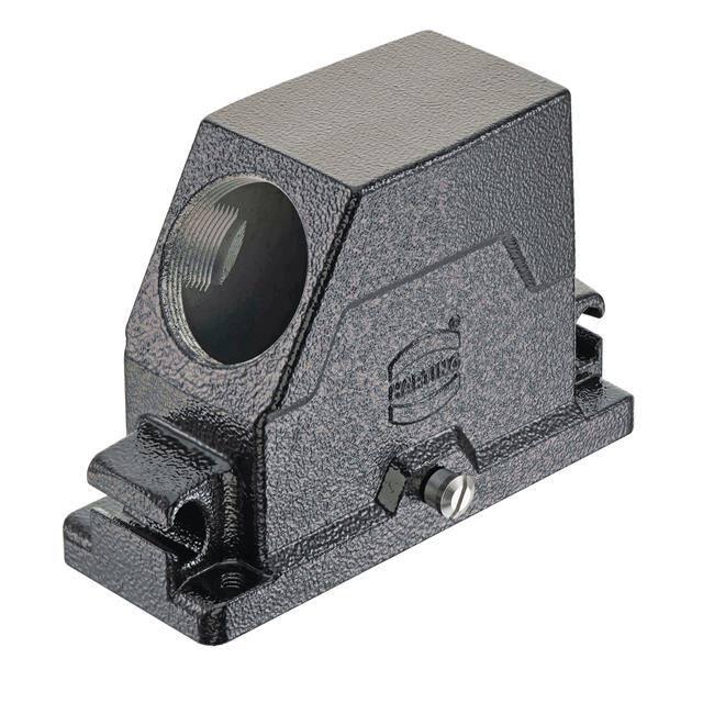 This is manufactured by HARTING. The manufacturer part number is 19405161683. Additionally, the product is designed with side entry Style. It is assigned with possible HTSUS value of 8538.90.8180. The product is rohs3 compliant. It has a typical thread size of m40. The product has -40°c ~ 125°c operating temperature range. Its typical moisture sensitivity level is 1 (unlimited). The product's housing has finished with a rugged powder coated. It has an integral black housing colour. It is shipped in bulk. hood Connector type offer robust functionality. It has a long 11 weeks standard lead time. The product also features robust aluminum, die cast housing material. It is IP rated with ip65/ip68/ip69k - dust tight, water resistant, waterproof. The product han® hpr, is a highly preferred choice for users. Lock Type & Location Information: locking clip (1) on base bottom. The product is available in 16hpr size. The product is designated with the ear99 code number