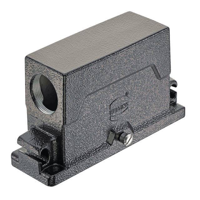 This is manufactured by HARTING. The manufacturer part number is 19405240582. Additionally, the product is designed with side entry Style. It is assigned with possible HTSUS value of 8538.90.8180. The product is rohs3 compliant. It has a typical thread size of m32. The product has -40°c ~ 125°c operating temperature range. Its typical moisture sensitivity level is 1 (unlimited). The product's housing has finished with a rugged powder coated. It has an integral black housing colour. It is shipped in bulk. hood Connector type offer robust functionality. It has a long 11 weeks standard lead time. The product also features robust aluminum, die cast housing material. It is IP rated with ip65/ip68/ip6k9k - dust tight, water resistant, waterproof. The product han® hpr, is a highly preferred choice for users. Lock Type & Location Information: locking clip (1) on base bottom. The product is available in 24hpr size. The product is designated with the ear99 code number