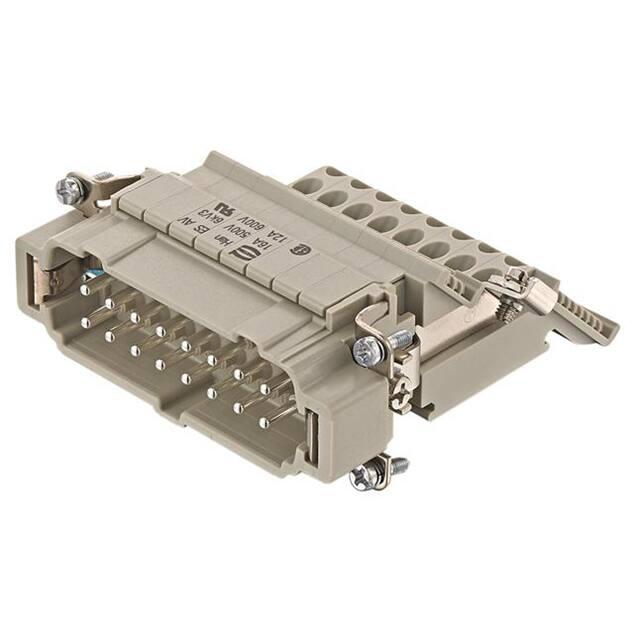 This is manufactured by HARTING. The manufacturer part number is 09330164639. It is assigned with possible HTSUS value of 8536.69.8000. The product is rohs3 compliant. Moreover, it has terminal block, straight - push in terminal style. The product also features robust polycarbonate (pc) housing material. The product has -40°c ~ 125°c operating temperature range. The product carries possible position value of 16+ground. Moreover, the product has a nominal 500v voltage rating. In addition, it is reach unaffected. It carries ul94 v-0 of material flammability rating. It is shipped in bulk. In addition, male is the available "Gender" of the product. insert Connector type offer robust functionality. Furthermore, the product is galvanized with excellent silver contact finishing. Its typical moisture sensitivity level is 1 (unlimited). It has a long 18 weeks standard lead time. Additionally, the product's output is 12a It has a classic gray colour. The product han es® av, is a highly preferred choice for users. The product is designated with the ear99 code number Moreover, it corresponds to 09330164, a base product number of the product. The product is made from sturdy copper alloy materials.