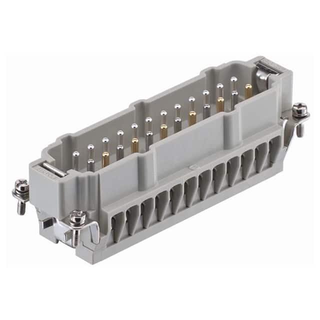 This is manufactured by HARTING. The manufacturer part number is 09330242689. It is assigned with possible HTSUS value of 8536.69.8000. The product is rohs3 compliant. Moreover, it has screw terminal style. The product also features robust polycarbonate (pc) housing material. The product has -40°c ~ 125°c operating temperature range. The product carries possible position value of 24+ground. Moreover, the product has a nominal 400v voltage rating. In addition, it is reach unaffected. It carries ul94 v-0 of material flammability rating. It is shipped in bulk. In addition, male is the available "Gender" of the product. insert Connector type offer robust functionality. Its typical moisture sensitivity level is 1 (unlimited). The product is available in 24b size. It has a long 14 weeks standard lead time. Additionally, the product's output is 16a It has a classic gray colour. The product han® e, is a highly preferred choice for users. The product is designated with the ear99 code number Moreover, it corresponds to 09330242, a base product number of the product.