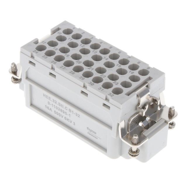 This is manufactured by TE Connectivity AMP Connectors. The manufacturer part number is 1102895-1. It is assigned with possible HTSUS value of 8538.90.8180. The product is rohs3 compliant. Moreover, it has crimp terminal style. The product also features robust polycarbonate (pc), glass filled housing material. The product carries possible position value of 32+ground. Moreover, the product has a nominal 500v voltage rating. In addition, it is vendor undefined. It is shipped in bulk. In addition, male is the available "Gender" of the product. insert without contacts Connector type offer robust functionality. Its typical moisture sensitivity level is 1 (unlimited). It has typical contact type of he/ha. The product is available in 6 size. It has a long 18 weeks standard lead time. Additionally, the product's output is 16a It has a classic gray colour. The product hee.32, hts, is a highly preferred choice for users. The product is designated with the ear99 code number Moreover, it corresponds to 1102895, a base product number of the product.