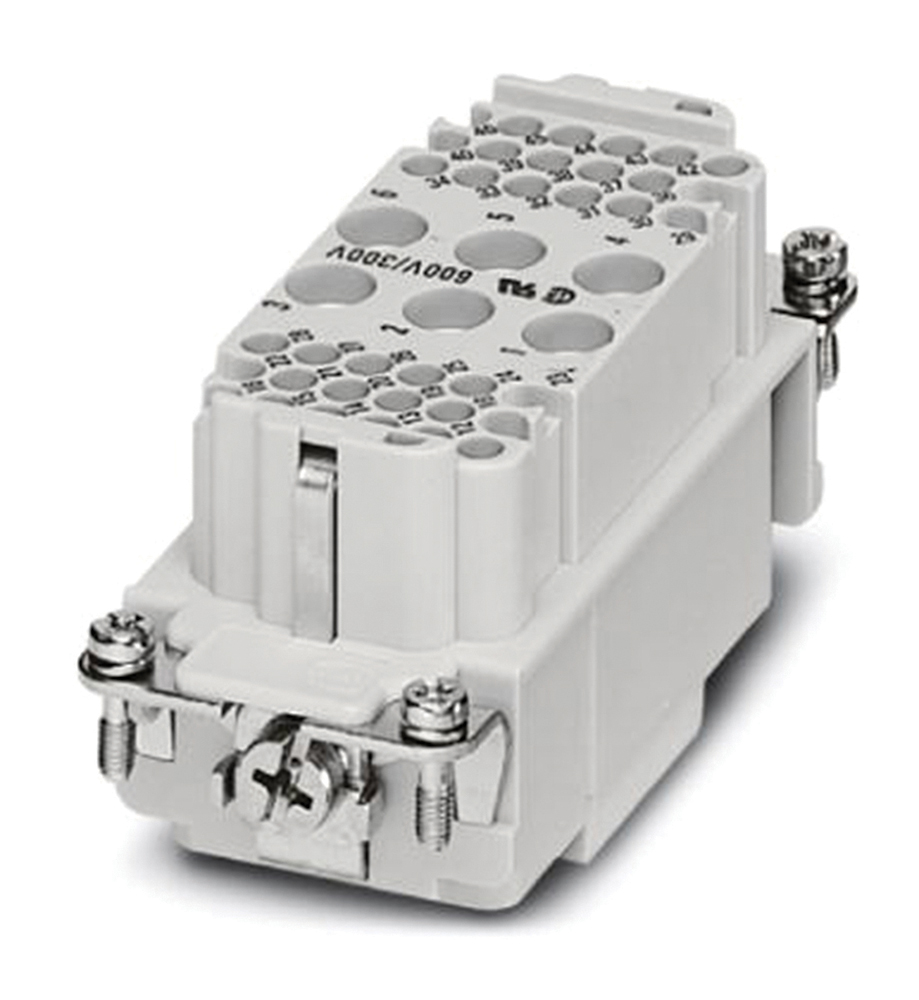 This is manufactured by Phoenix Contact. The manufacturer part number is 1636389. The product has a current rating of 40a. Moreover, the product has a nominal 160 v voltage rating. In addition, female is the available "Gender" of the product. The product hc-k 6/36 ebuc, is a highly preferred choice for users. It comes in connector insert configuration. It is assigned with possible HTSUS value of 8536.69.8000. The product is rohs compliant. Moreover, it has crimp terminal style. The product also features robust polycarbonate (pc) housing material. The product has -40°c ~ 125°c operating temperature range. The product carries possible position value of 6+36+ground. It carries ul94 v-0 of material flammability rating. It is shipped in bulk. insert without contacts Connector type offer robust functionality. Its typical moisture sensitivity level is 1 (unlimited). The product is available in b16 size. It has a long 4 weeks standard lead time. The product heavycon® k6/36, is a highly preferred choice for users. It has typical contact type of ck 1.6-ed, ck 4.0-ed. The product is designated with the ear99 code number