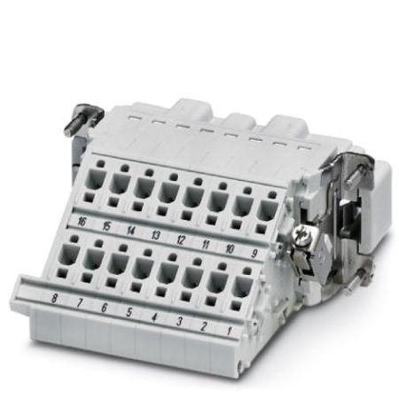 This is manufactured by Phoenix Contact. The manufacturer part number is 1648445. The product has a current rating of 16a. The product is available in panel mount configuration. Moreover, the product has a nominal 500 v ac voltage rating. In addition, male is the available "Gender" of the product. Whereas, the b16 is the manufacture's size code. The product b16, is a highly preferred choice for users. The product contains 16 contacts. It comes in terminal adapter configuration. It is assigned with possible HTSUS value of 8536.69.8000. The product is rohs compliant. Moreover, it has terminal block, straight - push in terminal style. The product also features robust polyamide (pa), nylon housing material. The product has -40°c ~ 125°c operating temperature range. The product carries possible position value of 16. Moreover, the product has a nominal 600v voltage rating. It carries ul94 v-0 of material flammability rating. It is shipped in bulk. insert Connector type offer robust functionality. Furthermore, the product is galvanized with excellent silver contact finishing. Its typical moisture sensitivity level is 1 (unlimited). The product is available in b16 size. It has a long 20 weeks standard lead time. Additionally, the product's output is 13a The product heavycon® b16, is a highly preferred choice for users. The product is designated with the ear99 code number The product is made from sturdy copper alloy materials.