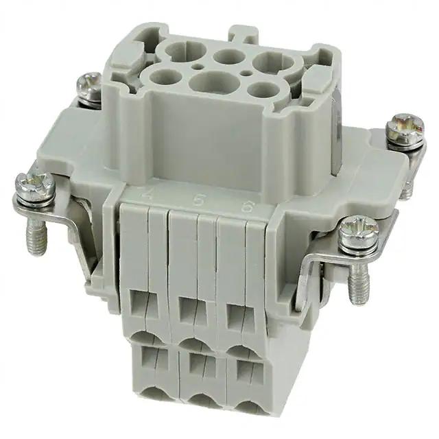 This is manufactured by HARTING. The manufacturer part number is 09330062772. The product contains 6 contacts. The product has a current rating of 16a. Moreover, the product has a nominal 500 v voltage rating. In addition, female is the available "Gender" of the product. It comes in 2 of rows. The product han ess, is a highly preferred choice for users. The product is made from sturdy copper alloy materials. It comes in connector insert configuration. It is assigned with possible HTSUS value of 8536.69.8000. The product is rohs3 compliant. Moreover, it has push in terminal style. The product also features robust polycarbonate (pc) housing material. The product has -40°c ~ 125°c operating temperature range. The product carries possible position value of 6+ground. Moreover, the product has a nominal 600v voltage rating. In addition, it is reach unaffected. It carries ul94 v-0 of material flammability rating. It is shipped in bulk. insert Connector type offer robust functionality. Furthermore, the product is galvanized with excellent silver contact finishing. Its typical moisture sensitivity level is 1 (unlimited). The product is available in 6b size. It has a long 18 weeks standard lead time. Additionally, the product's output is 16a It has a classic gray colour. The product han® ess, is a highly preferred choice for users. The product is designated with the ear99 code number Moreover, it corresponds to 09330062, a base product number of the product.