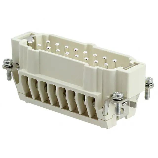 This is manufactured by HARTING. The manufacturer part number is 09338162601. It is assigned with possible HTSUS value of 8538.90.8180. The product is rohs3 compliant. Moreover, it has screw terminal style. The product also features robust liquid crystal polymer (lcp) housing material. The product has -40°c ~ 200°c operating temperature range. The product carries possible position value of 16+ground. Moreover, the product has a nominal 400v voltage rating. In addition, it is reach unaffected. It carries ul94 v-0 of material flammability rating. It is shipped in bulk. In addition, male is the available "Gender" of the product. insert Connector type offer robust functionality. Its typical moisture sensitivity level is 1 (unlimited). The product is available in 16b size. Additionally, the product's output is 16a It has a classic gray colour. The product han® high temp, is a highly preferred choice for users. The product is designated with the ear99 code number Moreover, it corresponds to 09338162, a base product number of the product. The product is made from sturdy copper alloy materials.