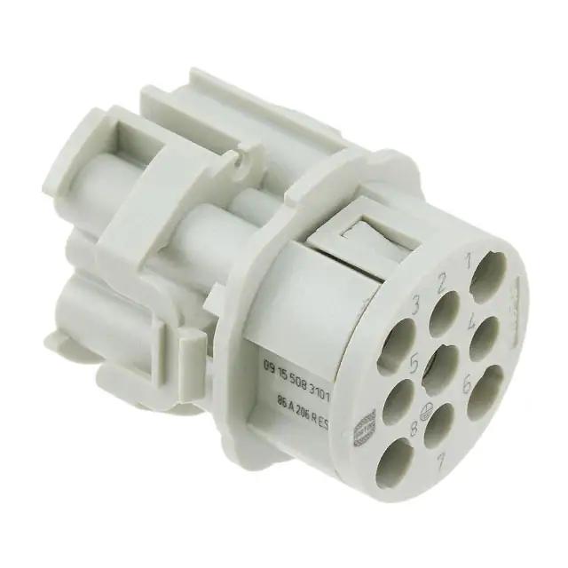 This is manufactured by HARTING. The manufacturer part number is 09155083101. The product has a current rating of 16a. Moreover, the product has a nominal 400 v voltage rating. In addition, female is the available "Gender" of the product. It comes in 3 of rows. The product han f+b, is a highly preferred choice for users. The product contains 4+4 contacts. It comes in connector insert configuration. It is assigned with possible HTSUS value of 8536.69.8000. The product is rohs3 compliant. Moreover, it has crimp terminal style. The product also features robust polycarbonate (pc) housing material. The product has -40°c ~ 125°c operating temperature range. The product carries possible position value of 4+4+ground. Moreover, the product has a nominal 400v voltage rating. In addition, it is reach unaffected. It carries ul94 v-0 of material flammability rating. It is shipped in bulk. insert without contacts Connector type offer robust functionality. Its typical moisture sensitivity level is 1 (unlimited). It has a long 12 weeks standard lead time. Additionally, the product's output is 16a The product han® f+b, is a highly preferred choice for users. The product is designated with the ear99 code number Moreover, it corresponds to 09155083, a base product number of the product.