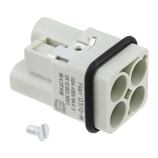 This is manufactured by HARTING. The manufacturer part number is 09120033051. The product has a current rating of 40a. The product is available in cable mount configuration. Moreover, the product has a nominal 400 v voltage rating. In addition, male is the available "Gender" of the product. The product han-modular, is a highly preferred choice for users. The product contains 3/0 contacts. It comes in connector insert configuration. The product is made from sturdy copper alloy materials. It is assigned with possible HTSUS value of 8536.69.8000. The product is rohs3 compliant. Moreover, it has crimp terminal style. The product also features robust polycarbonate (pc) housing material. The product has -40°c ~ 125°c operating temperature range. The product carries possible position value of 3+0+ground. Moreover, the product has a nominal 400v voltage rating. In addition, it is reach unaffected. It carries ul94 v-0 of material flammability rating. It is shipped in bulk. insert without contacts Connector type offer robust functionality. Its typical moisture sensitivity level is 1 (unlimited). It has typical contact type of han® c. The product is available in 3a size. It has a long 17 weeks standard lead time. Additionally, the product's output is 40a It has a classic gray colour. The product han® q, is a highly preferred choice for users. The product is designated with the ear99 code number Moreover, it corresponds to 09120033, a base product number of the product.