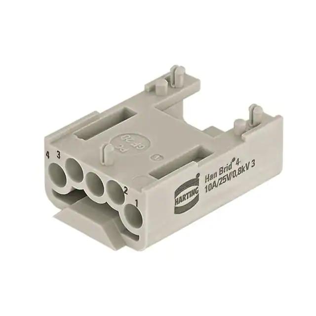 This is manufactured by HARTING. The manufacturer part number is 09120043101. It is assigned with possible HTSUS value of 8536.69.8000. The product is rohs3 compliant. Moreover, it has crimp terminal style. The product also features robust polycarbonate (pc) housing material. The product has -40°c ~ 125°c operating temperature range. The product carries possible position value of 4. Moreover, the product has a nominal 50v voltage rating. In addition, it is reach unaffected. It carries ul94 v-0 of material flammability rating. It is shipped in bulk. In addition, female is the available "Gender" of the product. module without contacts Connector type offer robust functionality. Its typical moisture sensitivity level is 1 (unlimited). It has typical contact type of han® d. The product is available in 3a size. It has a long 15 weeks standard lead time. Additionally, the product's output is 10a It has a classic gray colour. The product han-brid®, is a highly preferred choice for users. The product is designated with the ear99 code number Moreover, it corresponds to 09120043, a base product number of the product.