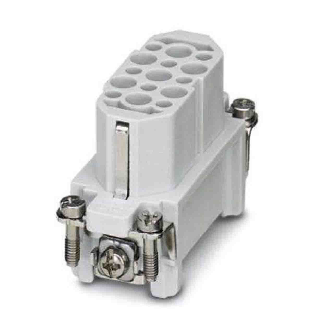 This is manufactured by Phoenix Contact. The manufacturer part number is 1584389. The product has a current rating of 10a. The product is available in din rail configuration. Moreover, the product has a nominal 250 v ac voltage rating. In addition, female is the available "Gender" of the product. The product hc, is a highly preferred choice for users. The product contains 15 contacts. It comes in female insert configuration. It is assigned with possible HTSUS value of 8538.90.8180. The product is rohs compliant. Moreover, it has crimp terminal style. The product also features robust polyamide (pa), nylon housing material. The product has -40°c ~ 125°c operating temperature range. The product carries possible position value of 15+ground. Moreover, the product has a nominal 250v voltage rating. It carries ul94 v-0 of material flammability rating. It is shipped in bulk. insert without contacts Connector type offer robust functionality. Its typical moisture sensitivity level is 1 (unlimited). It has typical contact type of ck 1.6-ed. The product is available in d15 size. It has a long 15 weeks standard lead time. Additionally, the product's output is 10a The product heavycon® d15, is a highly preferred choice for users. The product is designated with the ear99 code number