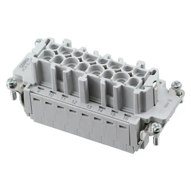 This is manufactured by Phoenix Contact. The manufacturer part number is 1648283. The product has a current rating of 16a. In addition, female is the available "Gender" of the product. The product hc-b16, is a highly preferred choice for users. The product contains 16 contacts. It comes in contact insert configuration. The product is made from sturdy copper alloy materials. It is assigned with possible HTSUS value of 8536.69.8000. The product is rohs3 compliant. Moreover, it has crimp terminal style. The product also features robust polyamide (pa), nylon housing material. The product has -40°c ~ 125°c operating temperature range. The product carries possible position value of 16+ground. Moreover, the product has a nominal 600v voltage rating. In addition, it is reach unaffected. It carries ul94 v-0 of material flammability rating. It is shipped in bulk. insert without contacts Connector type offer robust functionality. Its typical moisture sensitivity level is 1 (unlimited). It has typical contact type of ck 2.5-ed. The product is available in b16 size. It has a long 16 weeks standard lead time. Additionally, the product's output is 13a The product heavycon® b16, is a highly preferred choice for users. The product is designated with the ear99 code number