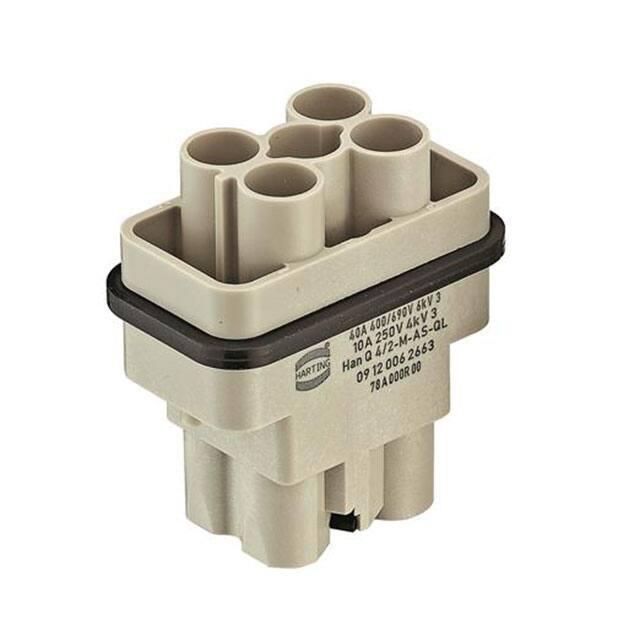 This is manufactured by HARTING. The manufacturer part number is 09120062665. It is assigned with possible HTSUS value of 8536.69.8000. The product is rohs3 compliant. Moreover, it has screw terminal style. The product also features robust polycarbonate (pc) housing material. The product has -40°c ~ 125°c operating temperature range. The product carries possible position value of 4+ground. In addition, it is reach unaffected. It carries ul94 v-0 of material flammability rating. It is shipped in bag. In addition, male is the available "Gender" of the product. insert Connector type offer robust functionality. Furthermore, the product is galvanized with excellent silver contact finishing. Its typical moisture sensitivity level is not applicable. It has a long 22 weeks standard lead time. It has a classic gray colour. The product han® q, is a highly preferred choice for users. The product is designated with the ear99 code number Moreover, it corresponds to 09120062, a base product number of the product. The product is made from sturdy copper alloy materials.