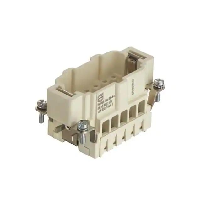 This is manufactured by HARTING. The manufacturer part number is 09338102602. It is assigned with possible HTSUS value of 8538.90.8180. The product is rohs3 compliant. Moreover, it has crimp terminal style. The product also features robust liquid crystal polymer (lcp) housing material. The product has -40°c ~ 200°c operating temperature range. The product carries possible position value of 10+ground. Moreover, the product has a nominal 400v voltage rating. In addition, it is reach unaffected. It is shipped in bulk. In addition, male is the available "Gender" of the product. insert without contacts Connector type offer robust functionality. Its typical moisture sensitivity level is 1 (unlimited). It has typical contact type of han® e. The product is available in 10b size. Additionally, the product's output is 16a The product han® e, is a highly preferred choice for users. The product is designated with the ear99 code number Moreover, it corresponds to 09338102, a base product number of the product.