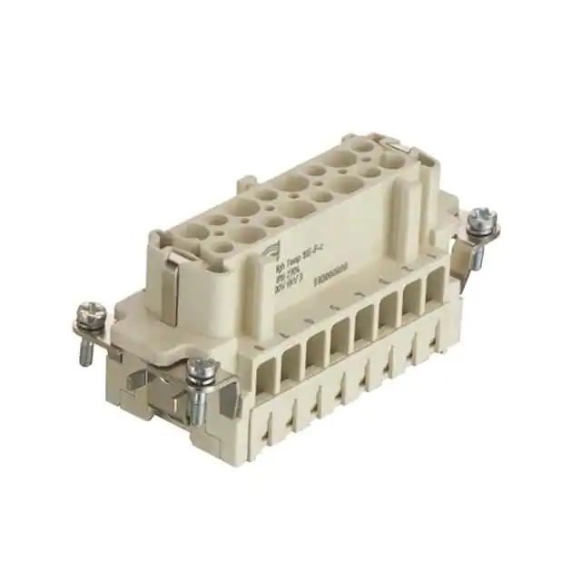 This is manufactured by HARTING. The manufacturer part number is 09338162702. It is assigned with possible HTSUS value of 8538.90.8180. The product is rohs3 compliant. Moreover, it has crimp terminal style. The product also features robust liquid crystal polymer (lcp) housing material. The product has -40°c ~ 200°c operating temperature range. The product carries possible position value of 16+ground. Moreover, the product has a nominal 400v voltage rating. In addition, it is reach unaffected. It is shipped in bulk. In addition, female is the available "Gender" of the product. insert without contacts Connector type offer robust functionality. Its typical moisture sensitivity level is 1 (unlimited). It has typical contact type of han® e. The product is available in 16b size. Additionally, the product's output is 16a The product han® e, is a highly preferred choice for users. The product is designated with the ear99 code number Moreover, it corresponds to 09338162, a base product number of the product.