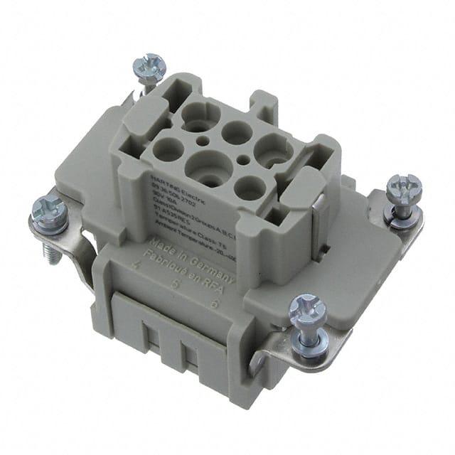 This is manufactured by HARTING. The manufacturer part number is 09365062702. It is assigned with possible HTSUS value of 8536.69.8000. The product is rohs3 compliant. Moreover, it has crimp terminal style. The product also features robust polycarbonate (pc) housing material. The product has -20°c ~ 40°c operating temperature range. The product carries possible position value of 6+ground. Moreover, the product has a nominal 90v voltage rating. In addition, it is reach unaffected. It is shipped in bulk. In addition, female is the available "Gender" of the product. insert without contacts Connector type offer robust functionality. Its typical moisture sensitivity level is not applicable. It has typical contact type of han® e. The product is available in 6b size. It has a long 8 weeks standard lead time. Additionally, the product's output is 16a It has a classic gray colour. The product han® ex, is a highly preferred choice for users. The product is designated with the ear99 code number Moreover, it corresponds to 09365062, a base product number of the product.