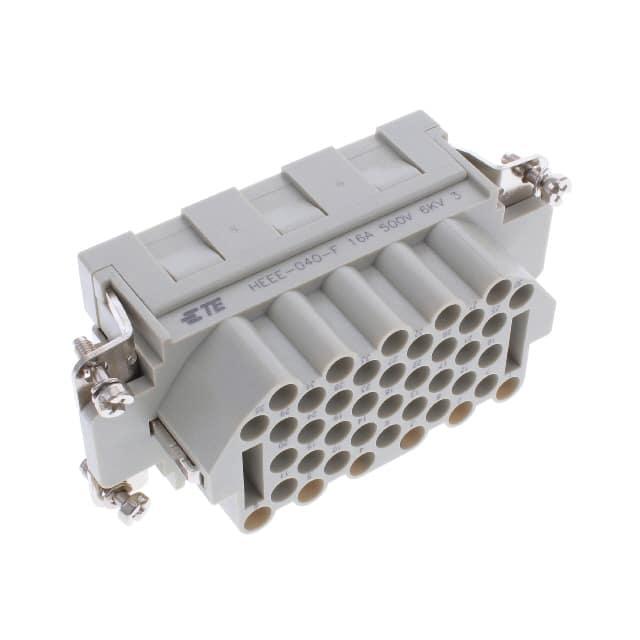 This is manufactured by TE Connectivity AMP Connectors. The manufacturer part number is HEEE-040-F. It is assigned with possible HTSUS value of 8538.90.8180. The product is rohs compliant. Moreover, it has crimp terminal style. The product also features robust polycarbonate (pc) housing material. The product has -40°c ~ 125°c operating temperature range. The product carries possible position value of 40+ground. Moreover, the product has a nominal 500v voltage rating. It carries en45545 of material flammability rating. It is shipped in bulk. In addition, female is the available "Gender" of the product. insert without contacts Connector type offer robust functionality. Its typical moisture sensitivity level is not applicable. It has typical contact type of cef, def. The product is available in h16b size. It has a long 18 weeks standard lead time. Additionally, the product's output is 16a The product heee, is a highly preferred choice for users. The product is designated with the ear99 code number Moreover, it corresponds to heee-04, a base product number of the product.