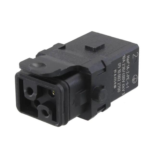 This is Han 1A-2+PE-S-f latch manufactured by HARTING. The manufacturer part number is 09100022700. The product has a current rating of 10a. In addition, female is the available "Gender" of the product. Moreover, the product has a nominal 230 v, 400 v voltage rating. It comes in 2 of rows. The product han 1a, is a highly preferred choice for users. The product contains 2 contacts. It comes in connector insert configuration. The product is made from sturdy copper alloy materials. It is assigned with possible HTSUS value of 8536.69.8000. The product is rohs3 compliant. Moreover, it has screw terminal style. The product also features robust polyamide (pa), nylon housing material. The product has -30°c ~ 90°c operating temperature range. The product carries possible position value of 2+ground. Moreover, the product has a nominal 400v voltage rating. In addition, it is reach unaffected. It carries ul94 v-0 of material flammability rating. It is shipped in bulk. insert Connector type offer robust functionality. Furthermore, the product is galvanized with excellent silver contact finishing. Its typical moisture sensitivity level is not applicable. The product is available in 1a size. Additionally, the product's output is 10a It has a classic black colour. The product han® 1a, is a highly preferred choice for users. The product is designated with the ear99 code number Moreover, it corresponds to 09100022, a base product number of the product.