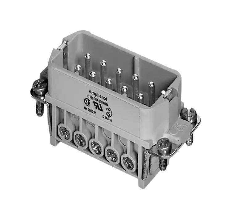 This is manufactured by Amphenol Tuchel Industrial. The manufacturer part number is C14610A0101024. It is assigned with possible HTSUS value of 8536.69.8000. The product is rohs3 compliant. Moreover, it has screw terminal style. The product also features robust polybutylene terephthalate (pbt) housing material. The product has -40°c ~ 100°c operating temperature range. The product carries possible position value of 10+ground. Moreover, the product has a nominal 250v voltage rating. In addition, it is reach unaffected. It carries ul94 v-0 of material flammability rating. It is shipped in bulk. In addition, male is the available "Gender" of the product. insert Connector type offer robust functionality. Furthermore, the product is galvanized with excellent silver contact finishing. Its typical moisture sensitivity level is 1 (unlimited). The product is available in a10 size. It has a long 30 weeks standard lead time. Additionally, the product's output is 14a The product heavy|mate®, c146 a, is a highly preferred choice for users. The product is designated with the ear99 code number Moreover, it corresponds to c14610a010, a base product number of the product. The product is made from sturdy brass materials.