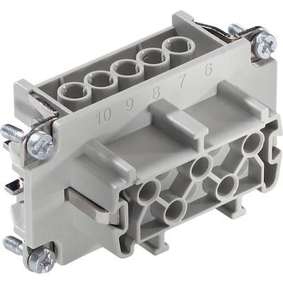 This is H-BE Series Cable Mount Connector Insert Female 10 Way 16A 600 V manufactured by Epic Contact. The manufacturer part number is 10193000. The product has a current rating of 16a. The product is available in cable mount configuration. Moreover, the product has a nominal 600 v voltage rating. In addition, female is the available "Gender" of the product. It comes in 2 of rows. The product h-be, is a highly preferred choice for users. The product contains 10 contacts. It comes in connector insert configuration. The product is made from sturdy copper alloy materials.