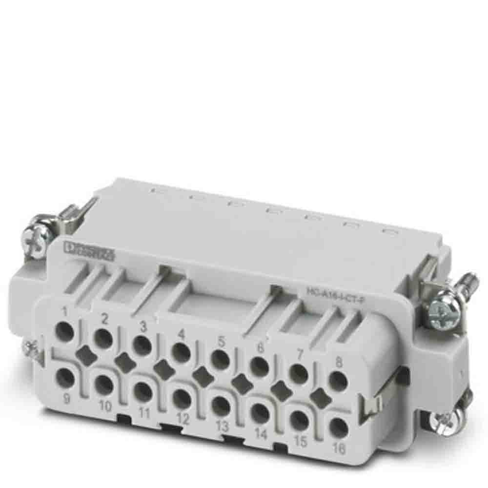 This is A16 Series Heavy Duty Power Connector Insert 16 contacts 16A Female manufactured by Phoenix Contact. The manufacturer part number is 1585443. The product has a current rating of 16a. In addition, female is the available "Gender" of the product. The product a16 series, is a highly preferred choice for users. The product contains 16 contacts. It comes in contact insert configuration. The product is made from sturdy copper alloy materials.