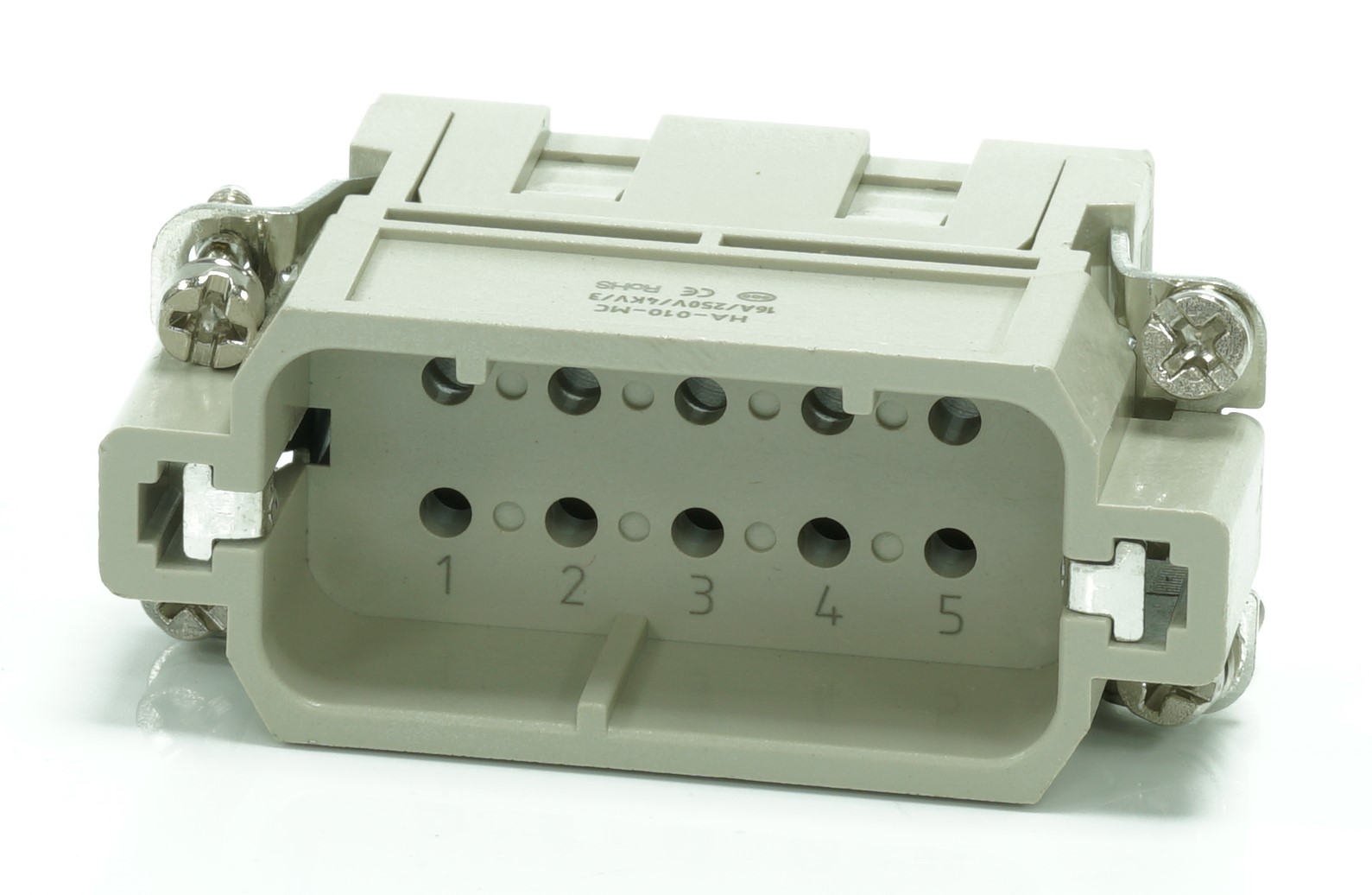 This is Heavy Duty Power Connector Insert 10 contacts 16A Male manufactured by RS PRO. The manufacturer part number is 208-4334. The product has a current rating of 16a. In addition, male is the available "Gender" of the product. The product rs-ha, is a highly preferred choice for users. The product contains 10 contacts. It comes in connector insert configuration. The product is made from sturdy copper alloy materials.