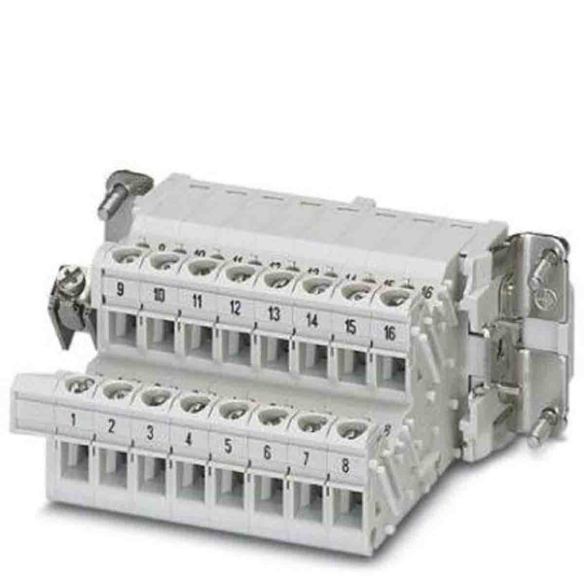 This is manufactured by Phoenix Contact. The manufacturer part number is 1648090. The product has a current rating of 16a. The product is available in din rail configuration. Moreover, the product has a nominal 500 v voltage rating. In addition, female is the available "Gender" of the product. The product hc, is a highly preferred choice for users. The product contains 16 contacts. It comes in terminal adapter configuration. It is assigned with possible HTSUS value of 8536.69.8000. The product is rohs compliant. Moreover, it has terminal block, straight - screw terminal style. The product also features robust polyamide (pa), nylon housing material. The product has -40°c ~ 125°c operating temperature range. The product carries possible position value of 16+ground. Moreover, the product has a nominal 600v voltage rating. It carries ul94 v-0 of material flammability rating. It is shipped in bulk. insert Connector type offer robust functionality. Furthermore, the product is galvanized with excellent silver contact finishing. Its typical moisture sensitivity level is 1 (unlimited). The product is available in b16 size. It has a long 8 weeks standard lead time. Additionally, the product's output is 13a The product heavycon® b16, is a highly preferred choice for users. The product is designated with the ear99 code number The product is made from sturdy copper alloy materials.