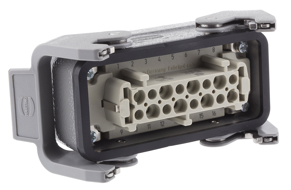 This is Han E Series 16 Way Female 16A Connector Kit includes Hood Insert manufactured by Harting. The manufacturer part number is 09330162701+19300161731. The product has a current rating of 16.0a. Moreover, the product has a nominal 500.0 v voltage rating. In addition, female is the available "Gender" of the product. Whereas, the 16 b is the manufacture's size code. It has a typical thread size of m25. The product han e, is a highly preferred choice for users. The product contains 16 contacts. It comes in connector set configuration.