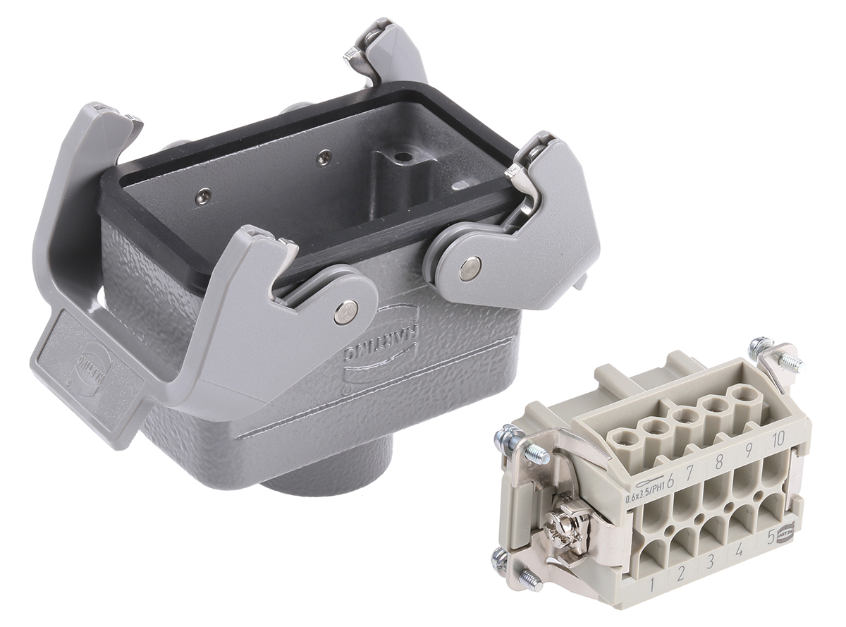 This is Han E Series 10 Way Female 16A Connector Kit includes Hood Insert manufactured by Harting. The manufacturer part number is 09330102701+19300101730. The product has a current rating of 16.0a. Moreover, the product has a nominal 500.0 v voltage rating. In addition, female is the available "Gender" of the product. Whereas, the 10 b is the manufacture's size code. It has a typical thread size of m20. The product han e, is a highly preferred choice for users. The product contains 10 contacts. It comes in connector set configuration.