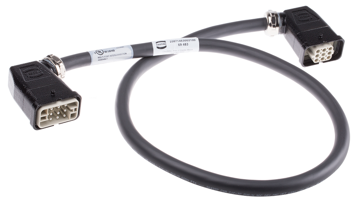 This is Han Q Series Right Angle Cable Assembly Male to Female 8 Way 12A 300 V dc 600 V ac manufactured by Harting. The manufacturer part number is 20871453002100. The product has a current rating of 12.0a. Moreover, the product has a nominal 300.0 v, 600.0 v voltage rating. In addition, female to male is the available "Gender" of the product. It comes in 3 of rows. The product han q, is a highly preferred choice for users. The product contains 8 contacts. It comes in cable assembly configuration.