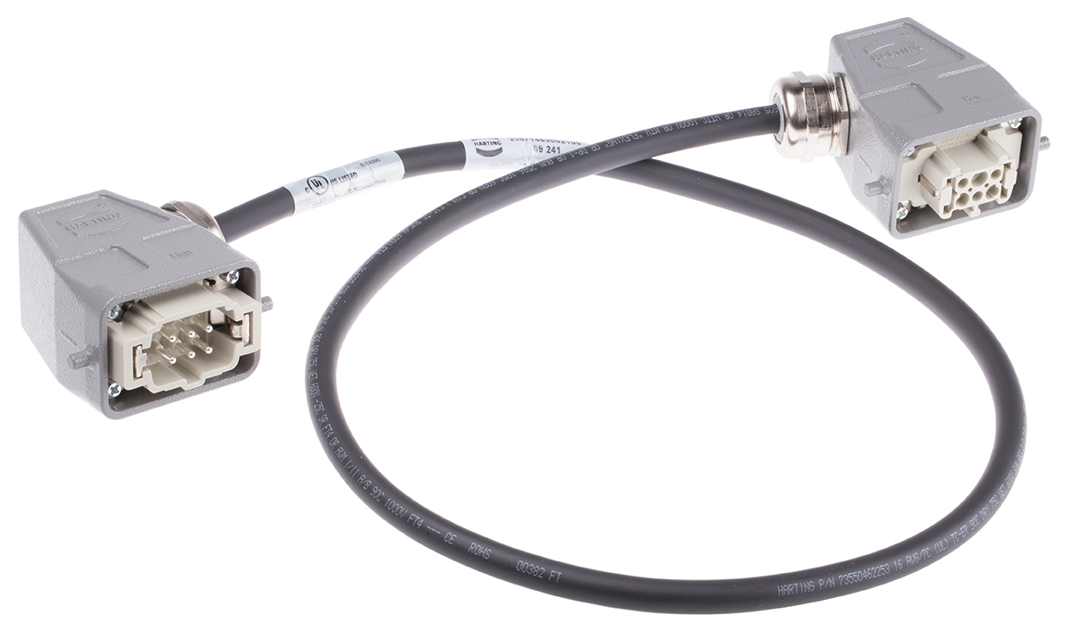 This is Han E Series Right Angle Cable Assembly Male to Female 6 Way 9A 600 V manufactured by Harting. The manufacturer part number is 20871463002100. The product has a current rating of 9.0a. Moreover, the product has a nominal 600.0 v voltage rating. In addition, female to male is the available "Gender" of the product. It comes in 2 of rows. The product han e, is a highly preferred choice for users. The product contains 6 contacts. It comes in cable assembly configuration.