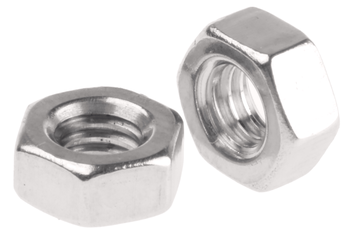This is Stainless Steel Hex Nut M3.5 manufactured by RS Pro. The manufacturer part number is 527-246. A quality product with a nice plain finish. The product is made from highly stable and reliable stainless steel. It has a typical thread size of m3.5. Furthermore, the product is 6mm wide. It comes in full configuration.