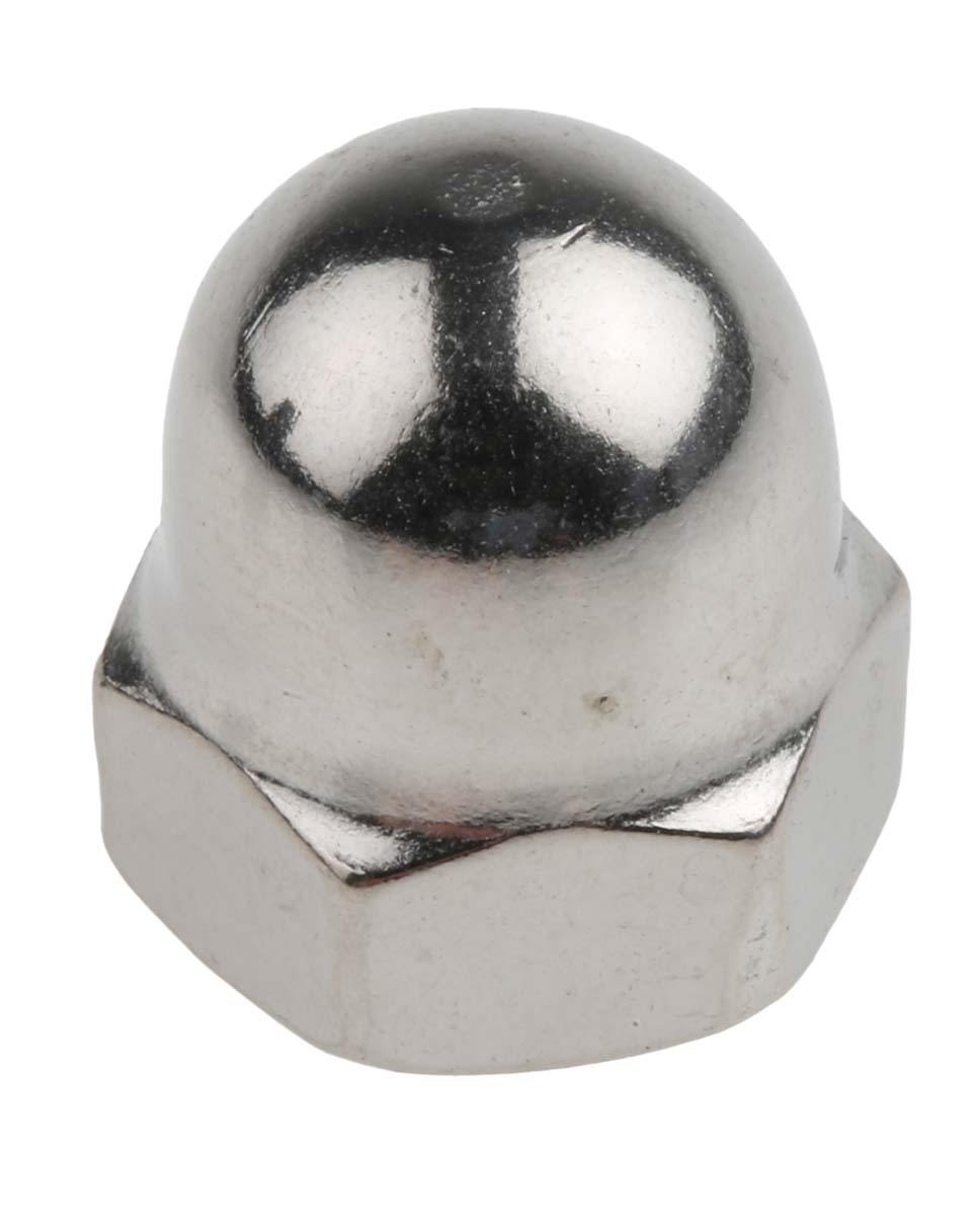 This is M8 A4 316 Plain Stainless Steel Dome Nut manufactured by RS Pro. The manufacturer part number is 248-4501. A quality product with a nice plain finish. The product is made from highly stable and reliable stainless steel. It has a typical thread size of m8. Furthermore, the product is 14.38mm wide. It comes in loose bolt configuration.