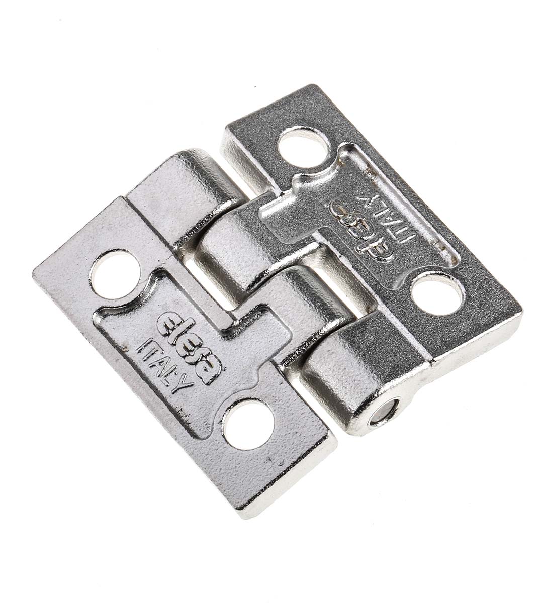 This is Electro Polished Stainless Steel Pin Hinge with a Fixed pin Screw 40mm x 40mm x 5mm manufactured by Elesa. The manufacturer part number is 428501. The product is made from highly stable and reliable stainless steel. It is 5mm thick. Furthermore, the product is 40mm wide. Its accurate length is 40mm.