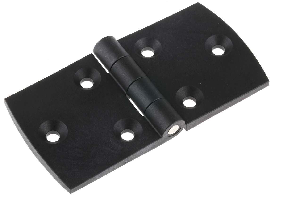 This is Black Polyamide Hinge with a Fixed pin Screw 60mm x 120mm x 6.5mm manufactured by Pinet. The manufacturer part number is 54-1-3524. The product is made from highly stable and reliable polyamide. It is 6.5mm thick. Furthermore, the product is 120mm wide. Its accurate length is 60mm.