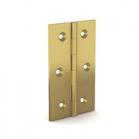 This is Plain Brass Hinge 80mm x 60mm x 3mm manufactured by Pinet. The manufacturer part number is 7273671. The product is made from highly stable and reliable brass. It is 3mm thick. Furthermore, the product is 60mm wide. Its accurate length is 80mm.