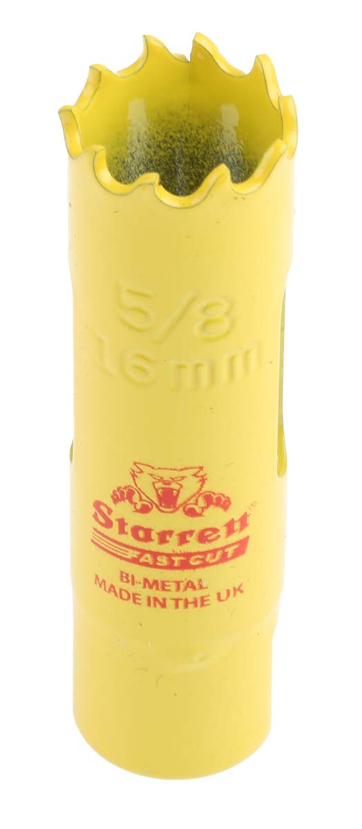 This is HSS 16mm Fast Cut Hole Saw Bi-Metal 41mm Cut Depth manufactured by Starrett. The manufacturer part number is FCH0058. Its diameter is 16mm. The product is made from highly stable and reliable hss. It comes in hole saw configuration.