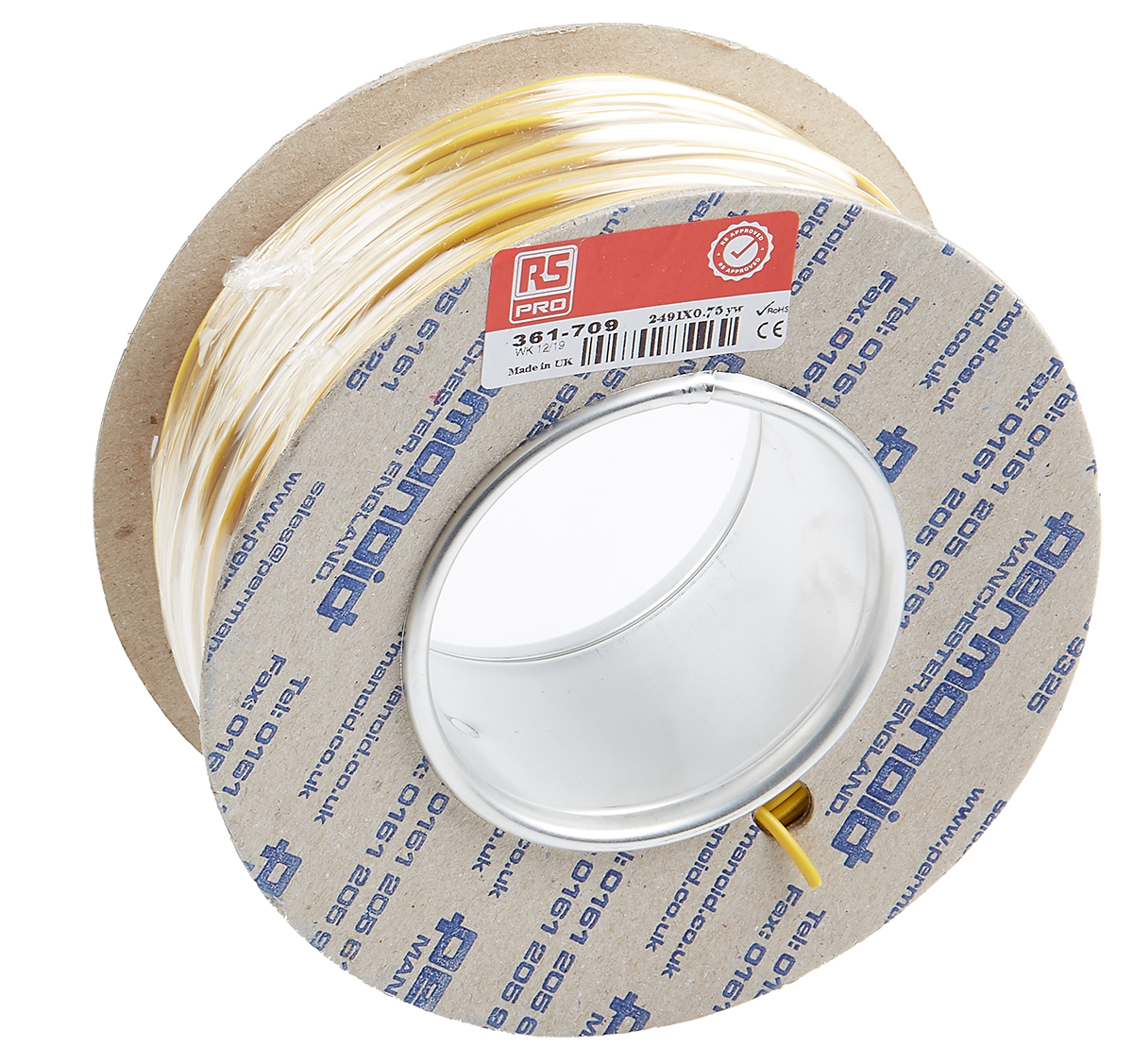This is Yellow 100m PVC 2491X Equipment Wire 0.75 mm² CSA 750 V 18 AWG manufactured by RS Pro. The manufacturer part number is 361-709. Moreover, the product has a nominal 500 v voltage rating. The conductor is made from annealed copper material. It has a maximum operating temperature of +70°c. The item is shielded with a unshielded. Its accurate length is 100m. It has a robust pvc insulation material.
