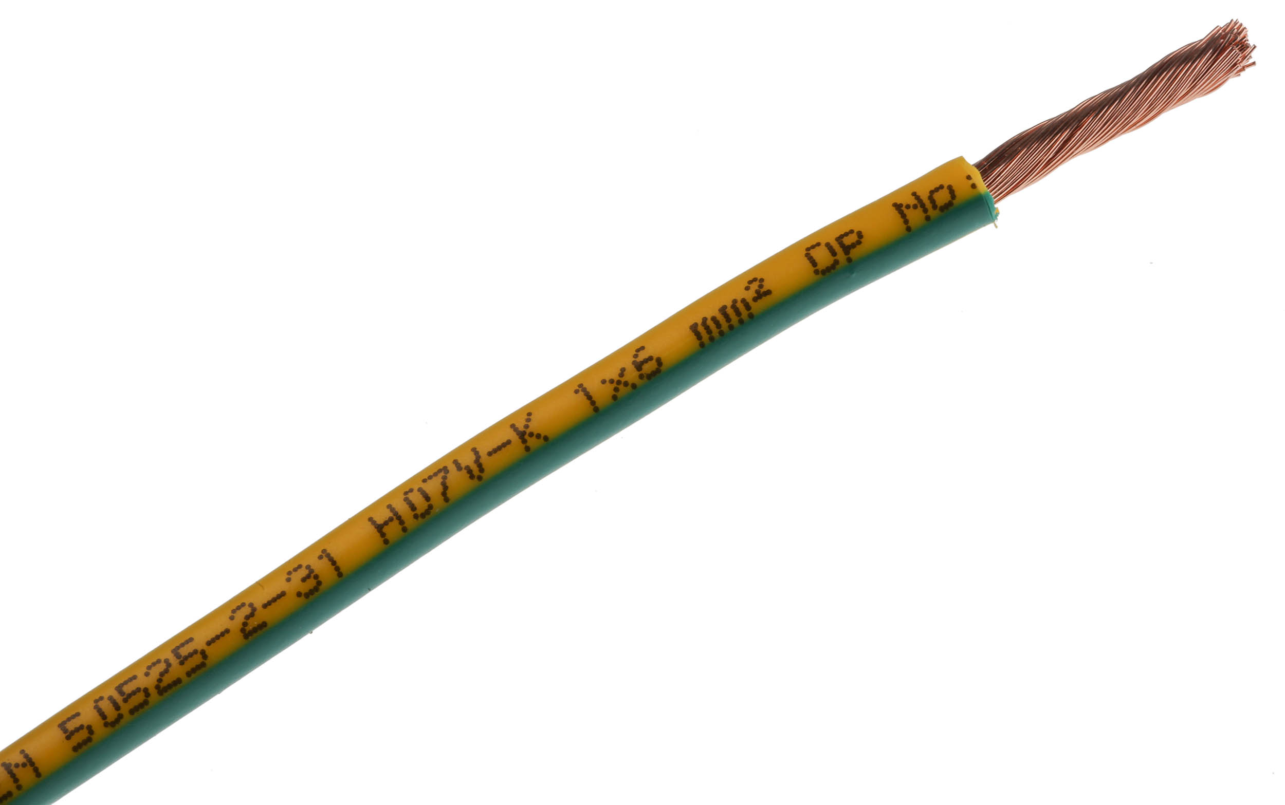 This is 1 Core 6 mm² Power Cable Green/Yellow Polyvinyl Chloride PVC Sheath 100m 750 V H07V-K manufactured by RS Pro. The manufacturer part number is 902-8451. Moreover, the product has a nominal 750 v voltage rating. The conductor is made from copper material. Its accurate length is 100m. It has a robust pvc insulation material.