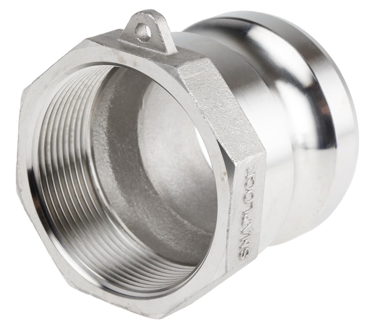 This is Straight Male Hose Coupling 2in Part A Cam & Groove Adapter 2 in BSPT Female Stainless Steel manufactured by RS Pro. The manufacturer part number is 307-178. It has a typical thread size of 2in. The product's body is nicely designed from stainless steel materials.