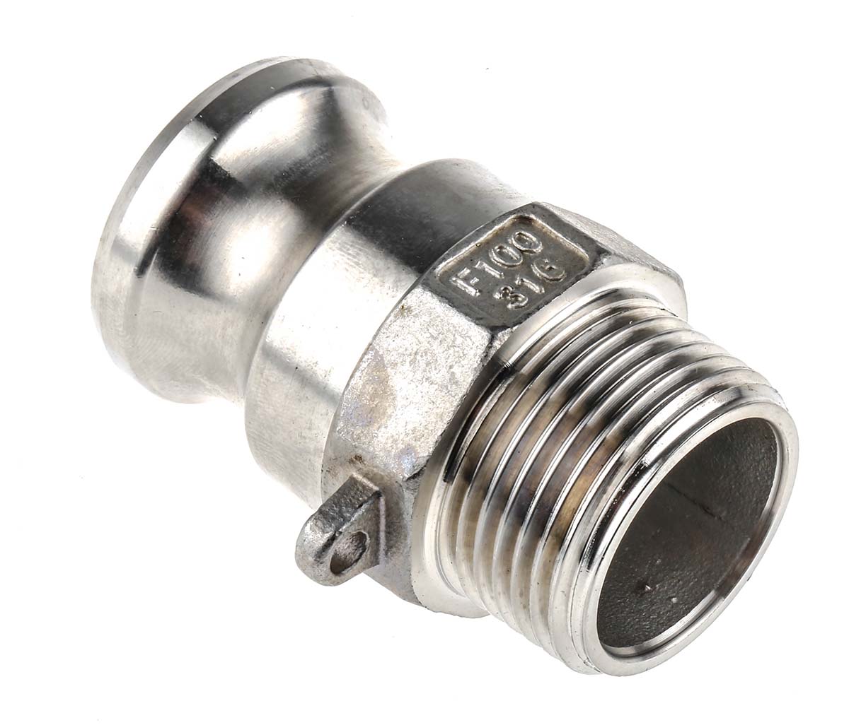 This is Straight Male Hose Coupling 1in Part F Cam & Groove Adapter 1 in BSPT Male Stainless Steel manufactured by RS Pro. The manufacturer part number is 307-308. It has a typical thread size of 1in. The product's body is nicely designed from stainless steel materials.
