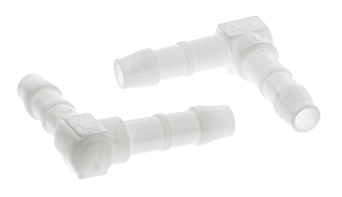 This is Elbow Male Hose Coupling Push-On POM manufactured by RS Pro. The manufacturer part number is 419-7237. The product's body is nicely designed from acetal materials.