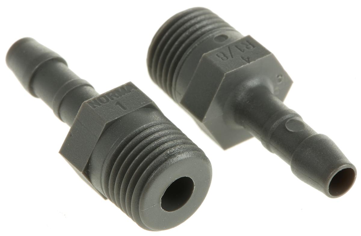 This is Straight Male Hose Coupling 1/8in 1/8 in R Male Polyamide manufactured by RS Pro. The manufacturer part number is 419-7401. It has a typical thread size of 1/8in. The product's body is nicely designed from polyamide materials.
